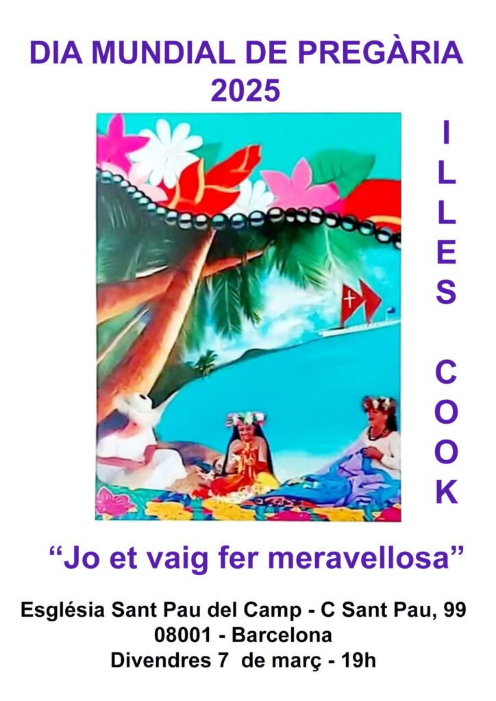 El primer divendres de març, ens unirem en oració i acció en el Dia Mundial de Pregària per les Illes Cook a l'església de Sant Pau del Camp. Al final del segle XIX, les dones baptistes dels EUA van començar a pregar i donar suport econòmicament a les missioneres...